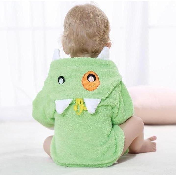 Baby Hooded Animal Cartoon Bathrobe - Green Monster