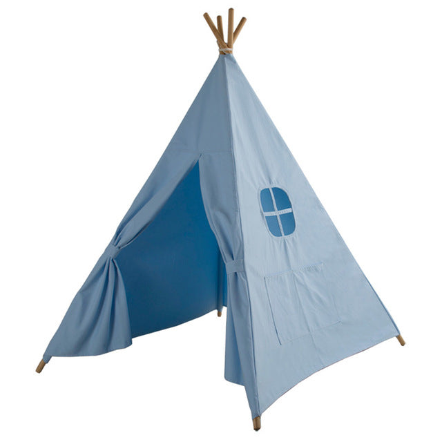 Four Poles Teepee - Kids Indian Play Tent - White - Blue - Pink